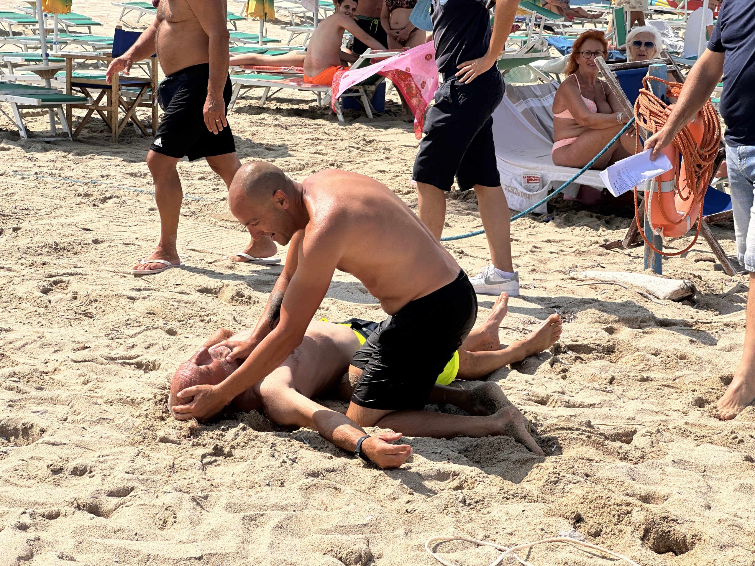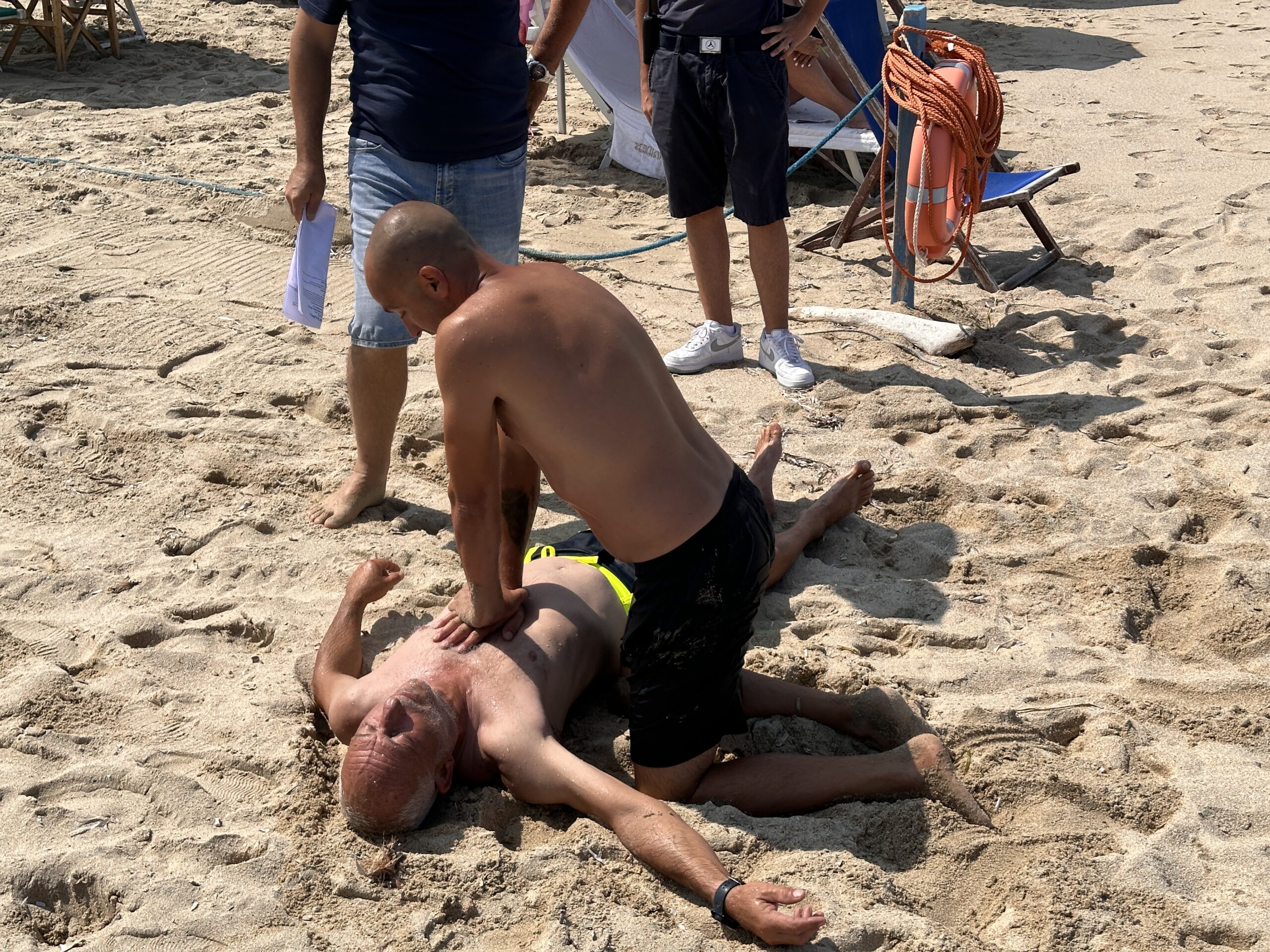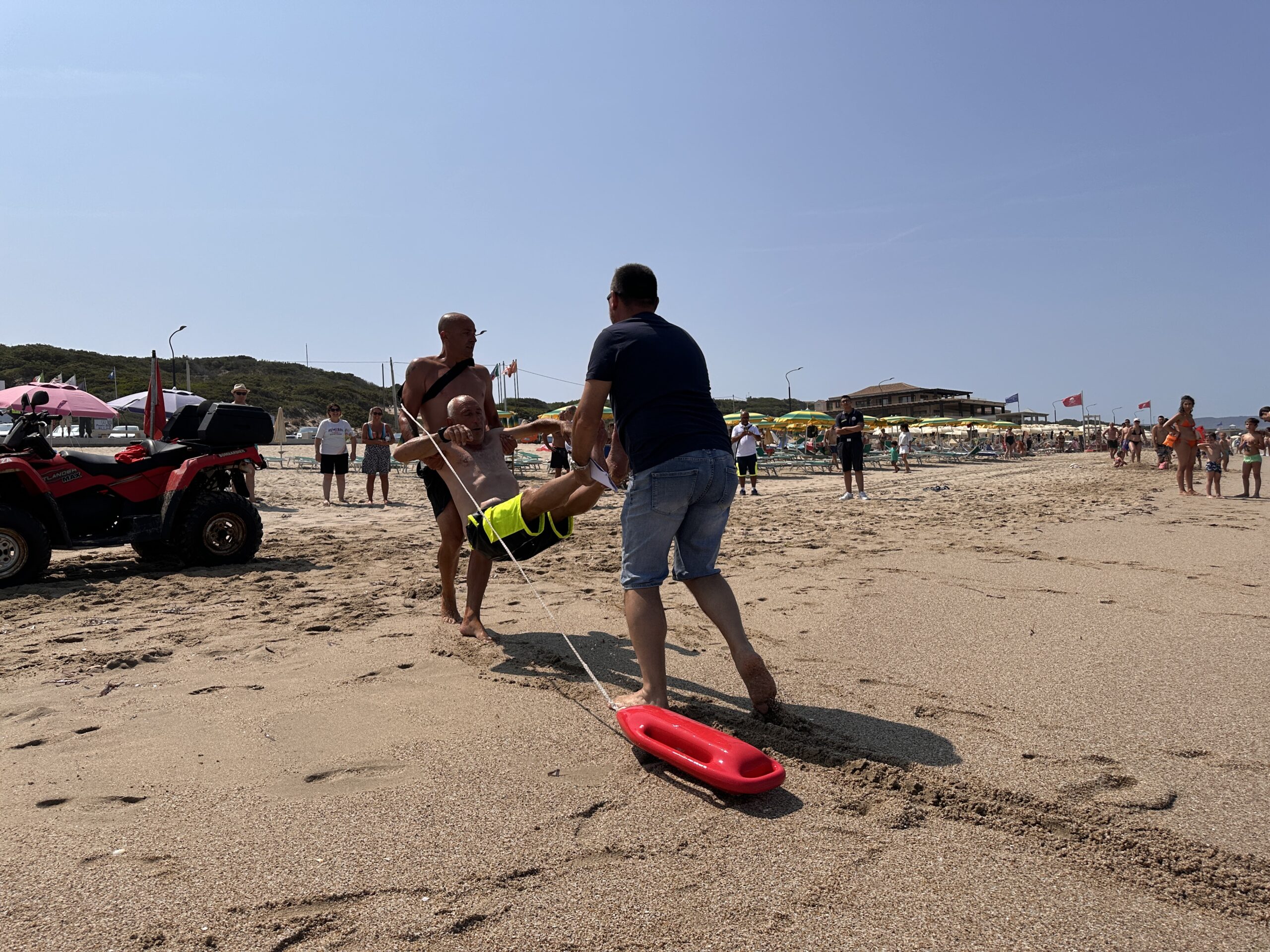 Ore 12:00 – Il momento culminante della giornata è stato la simulazione di un intervento di salvataggio in mare. I soccorritori hanno mostrato come agire in caso di annegamento, eseguendo un salvataggio realistico e dimostrando l’importanza della tempestività e della competenza. Il pubblico ha seguito con interesse e molti hanno commentato quanto fosse istruttivo assistere a una simulazione così dettagliata.